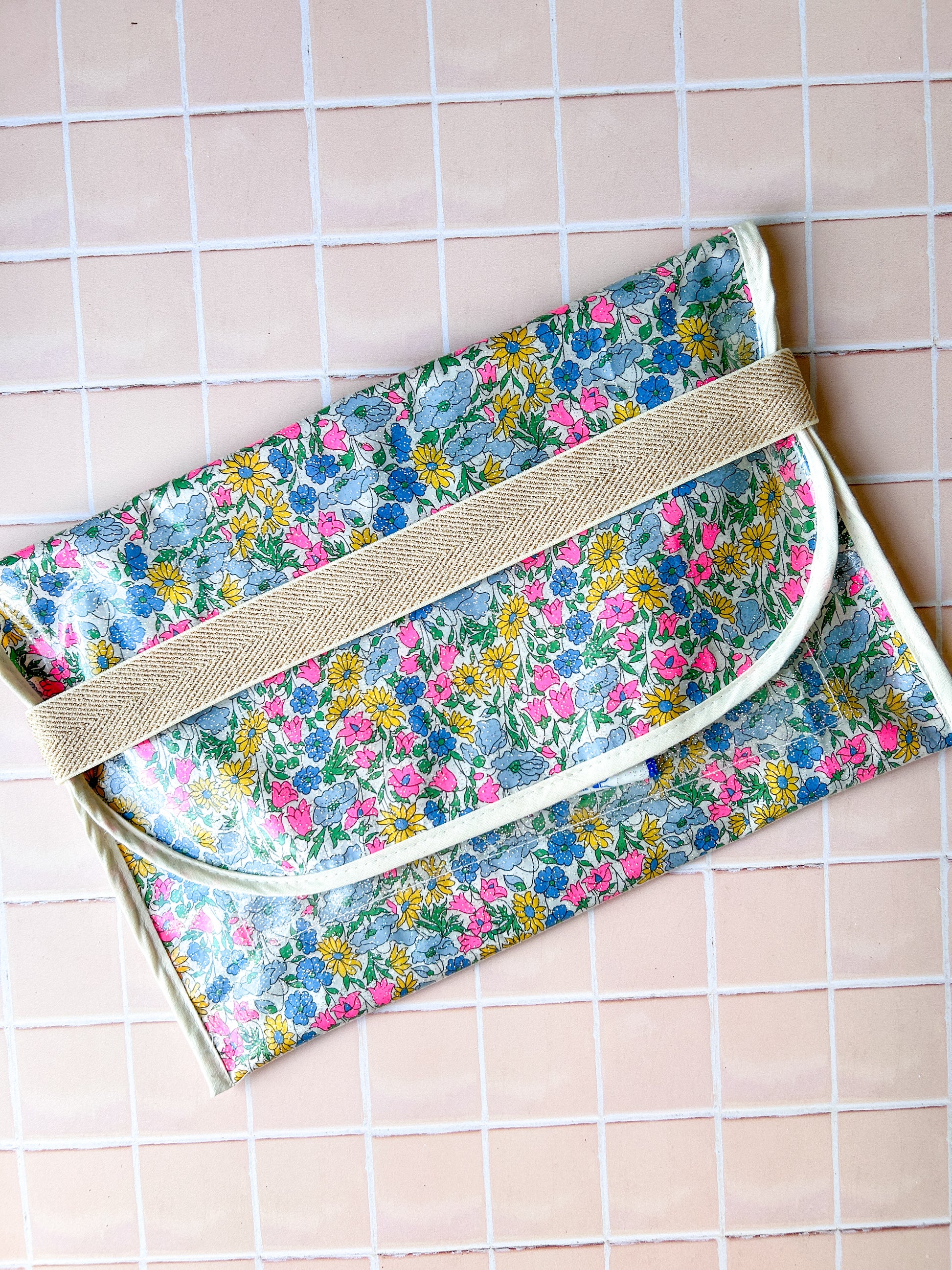 Chaque pochette est confectionnée à la main dans mon atelier, en série limitée, avec un tissu Liberty doux, léger et résistant.