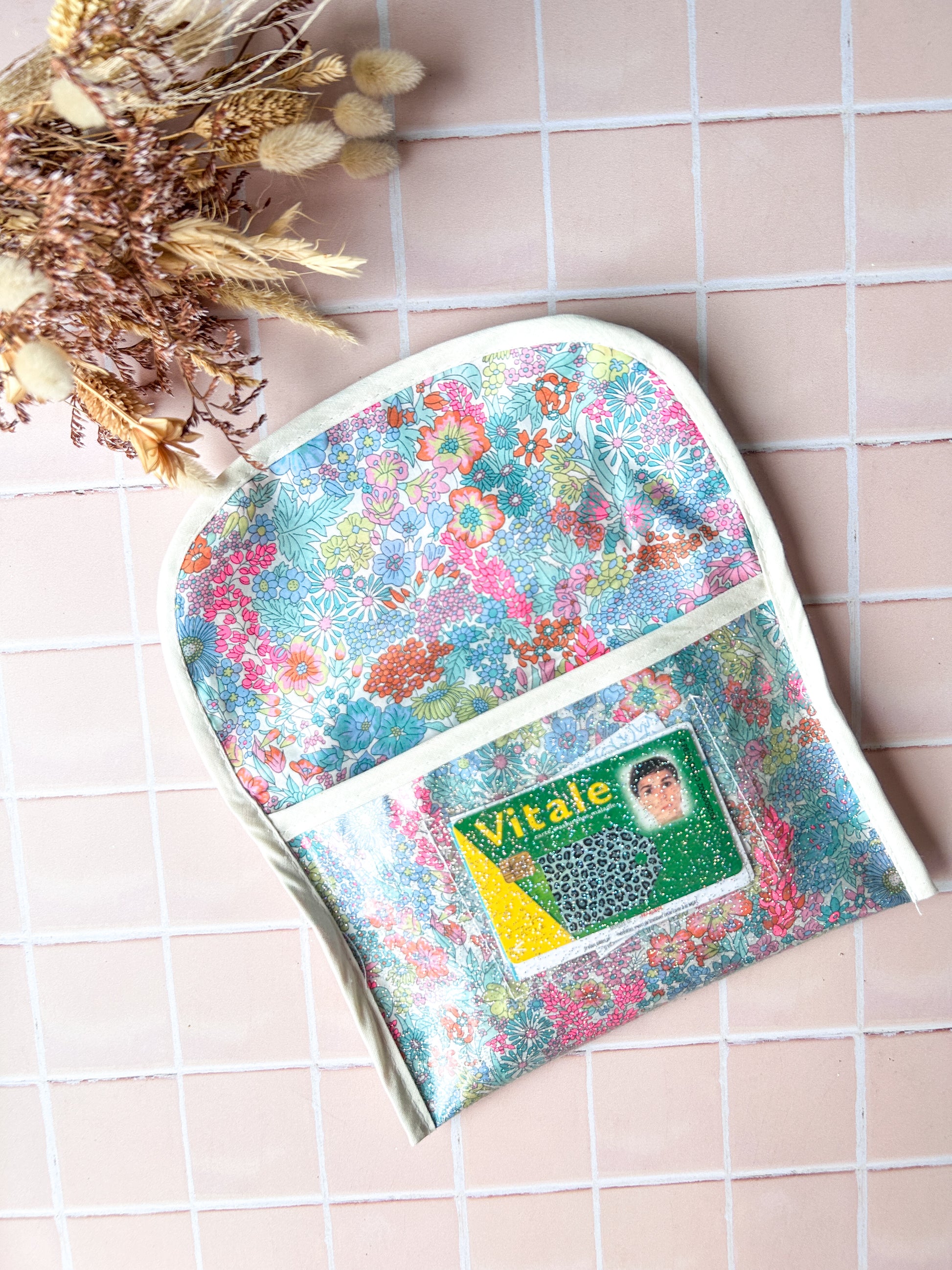 Glisse ordonnances, carte Vitale ou papiers importants dans cette pochette jolie et pratique ! En Liberty enduit, elle t’accompagne partout avec style.