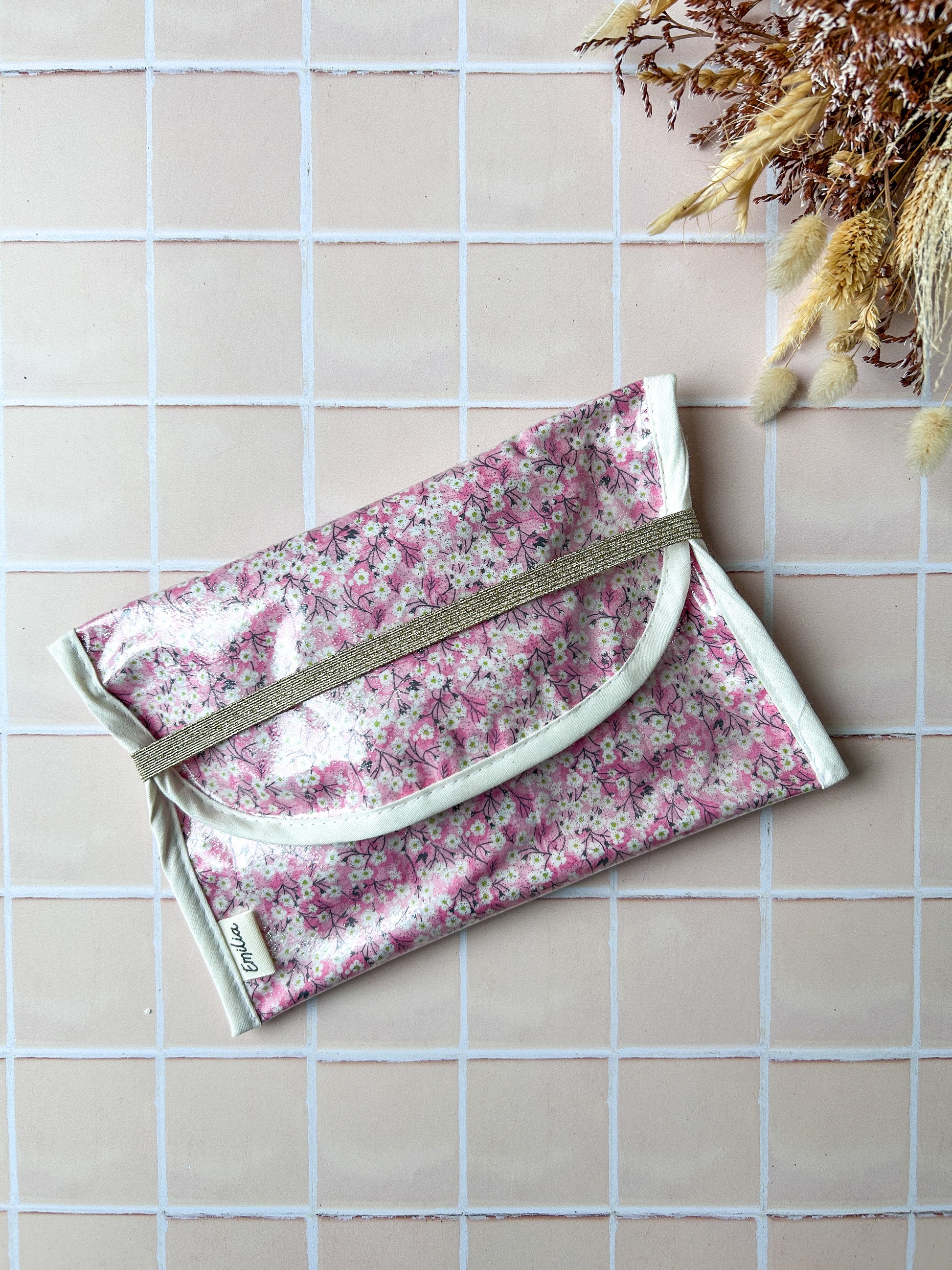 Pochette hygiénique enduite, pratique et discrète, idéale pour ranger serviettes hygiéniques, culottes menstruelles ou rechange. Opaque, imperméable et facile à glisser dans un sac, parfaite pour les ados comme pour les femmes actives.